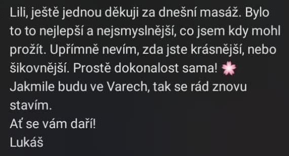 — Klidně okamžitě sdělujte, pokud Vám něco vadí, nebo jestli chcete víc přitlačit (nebo naopak zeslabit masážní hmaty).